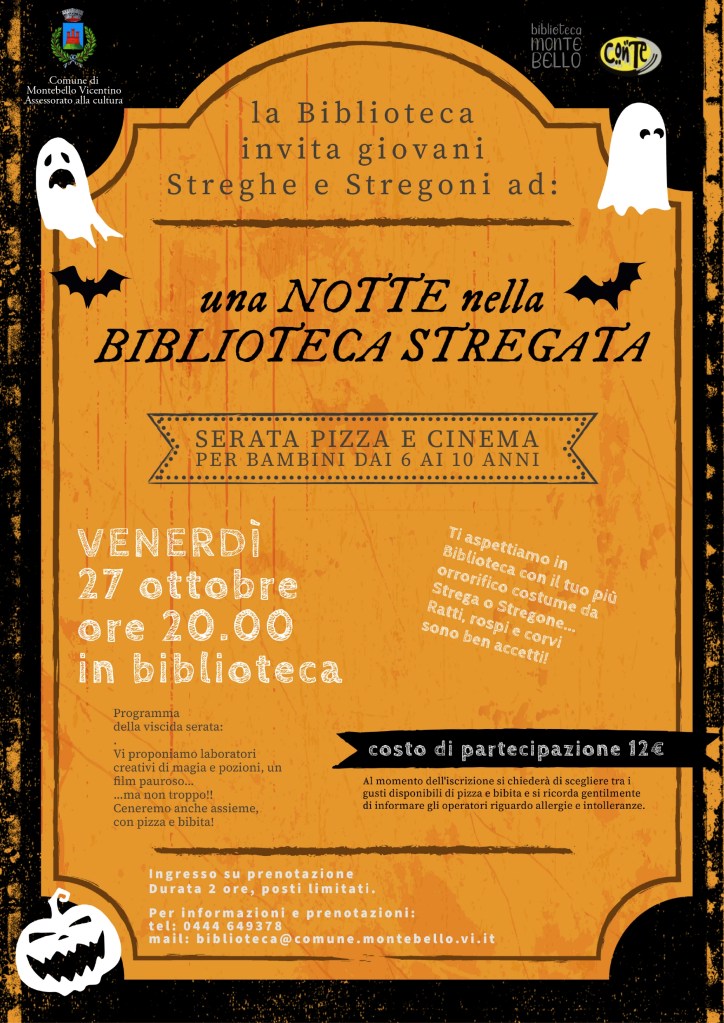 Si chiama “Una notte nella biblioteca stregata” ed è in programma venerdì 27 ottobre, a partire dalle 20. Il programma prevede laboratori creativi di magia e pozioni, la visione di un film pauroso… ma non troppo e la cena in compagnia a base di pizza.