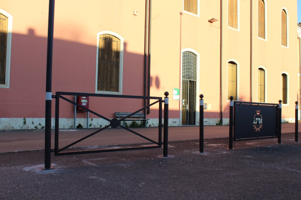 Posizionate lungo il perimetro del parcheggio, le barriere hanno il compito di dividere l’area di manovra delle auto dalle zone prettamente pedonali. Costo dell’intervento, circa 7000 euro.