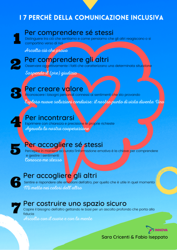 Ma quali sono i 7 perché della comunicazione inclusiva? Ecco come li hanno declinati le partecipanti alla formazione:
