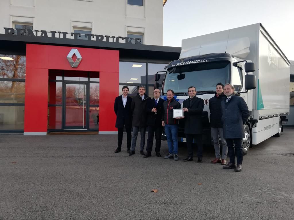 È avvenuta presso la concessionaria di Montebello Vicentino “Pesce Edoardo V.I.” la prima consegna in Veneto ad un’azienda privata di una motrice Renault da 16 tonnellate 100% elettrica, per la precisione un Renault Trucks D WIDE E-Tech.