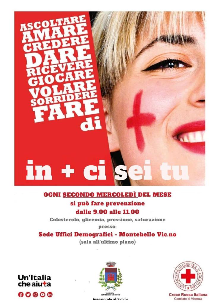 Ogni secondo mercoledì del mese dalle 9 alle 11, grazie alla collaborazione tra l’Assessorato al Sociale e il Comitato di Vicenza della Croce Rossa Italiana, nella sala all’ultimo piano degli uffici demografici del Comune (via Gen. Vaccari 55) è possibile sottoporsi al controllo gratuito di colesterolo, glicemia, pressione e saturazione.