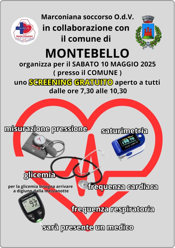 Visto il successo del servizio di screening offerto dalla Croce Rossa Italiana – Comitato di Vicenza ogni secondo mercoledì del mese nella sala al terzo piano degli uffici demografici, il Comune di Montebello Vicentino ha deciso di implementare questa iniziativa di prevenzione, stringendo un accordo anche con Marconiana Soccorso odv.