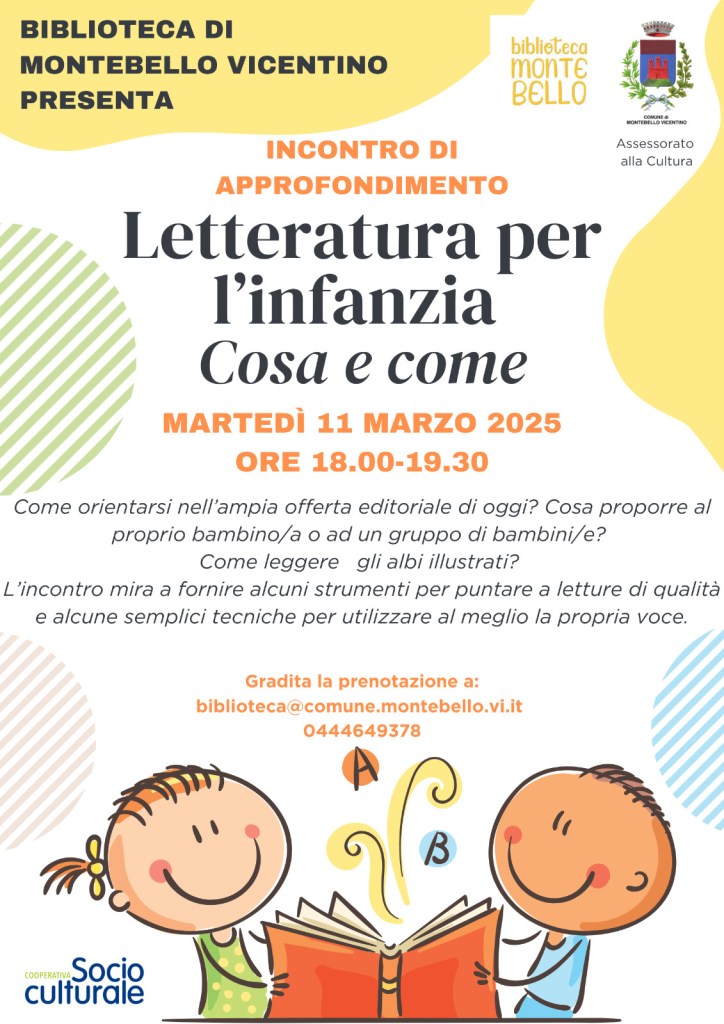 Si chiama “Letteratura per l’infanzia – Cosa e come” l’incontro di approfondimento che l’Assessorato alla Cultura e la biblioteca civica propongono martedì 11 marzo dalle 18 alle 19.30 nella stessa biblioteca.
