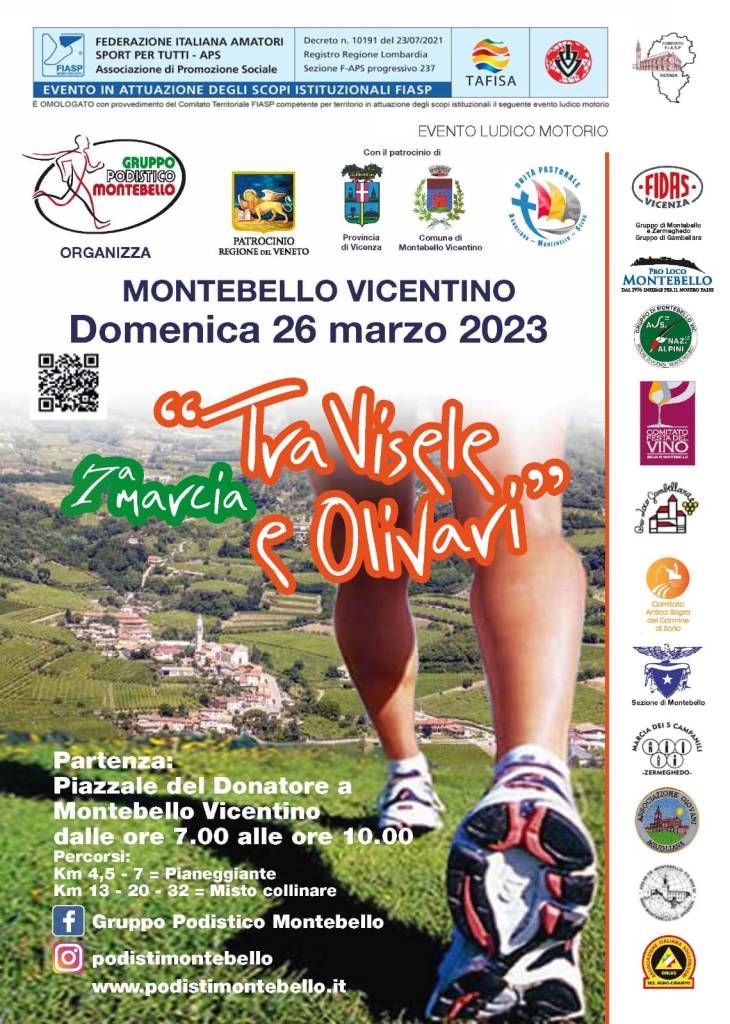Conto alla rovescia per la settima edizione della marcia “Tra visele e olivari”, organizzata dal Gruppo Podistico Montebello con il patrocinio della Regione del Veneto, della Provincia di Vicenza e del Comune di Montebello Vicentino.