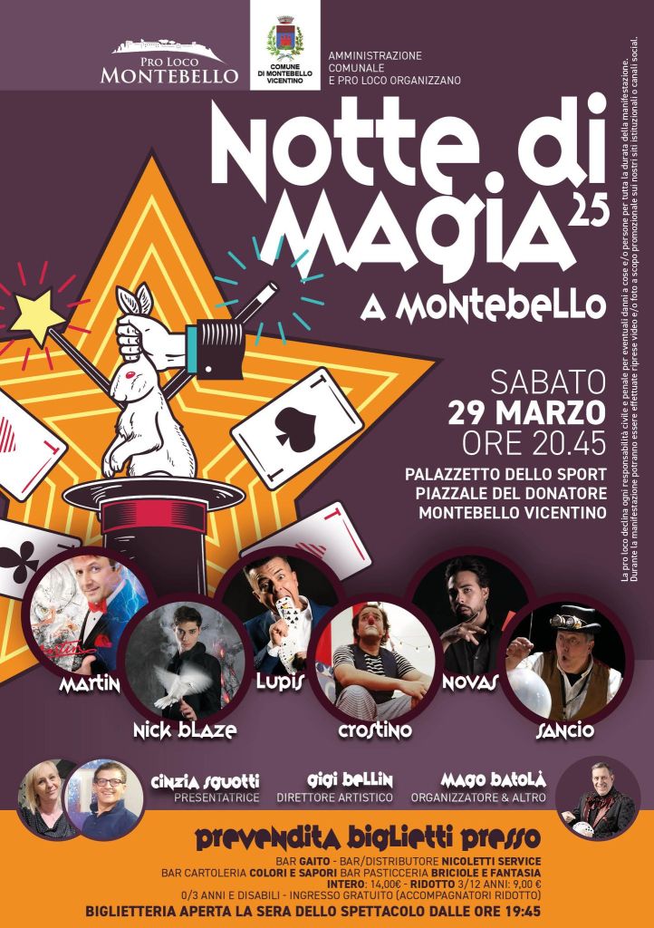 Si avvicina uno degli appuntamenti ormai consolidati e di successo per Montebello Vicentino. È la Notte di magia, che sabato 29 marzo dalle 20.45 vedrà alternarsi, al Palazzetto dello Sport, alcuni tra i migliori maghi, prestigiatori e illusionisti del panorama nazionale.