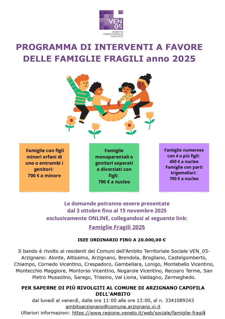 Le domande potranno essere presentate dal 3 ottobre fino al 15 novembre 2025 esclusivamente online, collegandosi a questo link.
