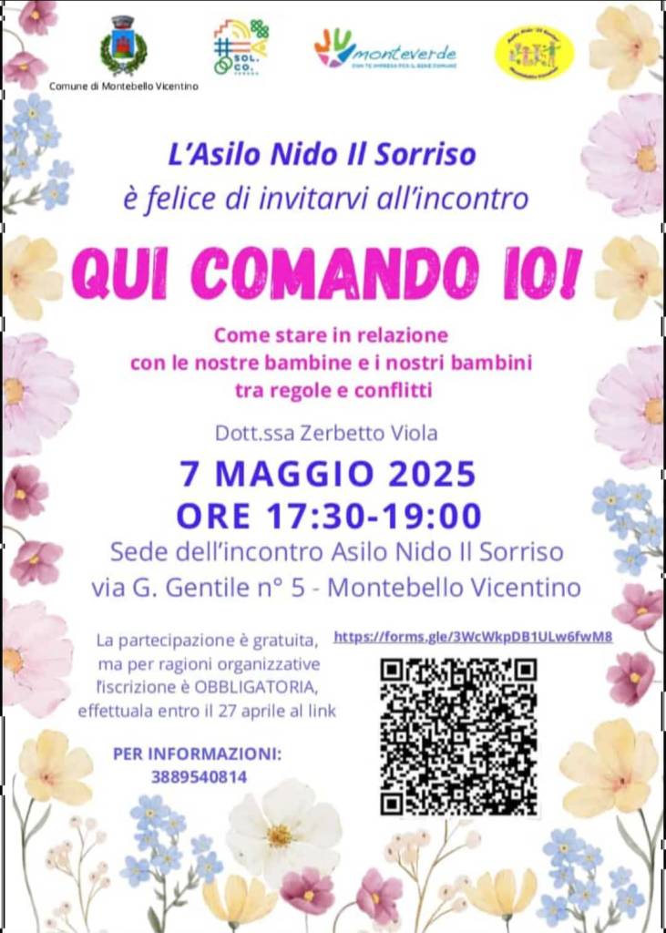 L’asilo nido “Il sorriso” invita i genitori all’incontro “Qui comando io! – Come stare in relazione con le nostre bambine e i nostri bambini tra regole e conflitti”.