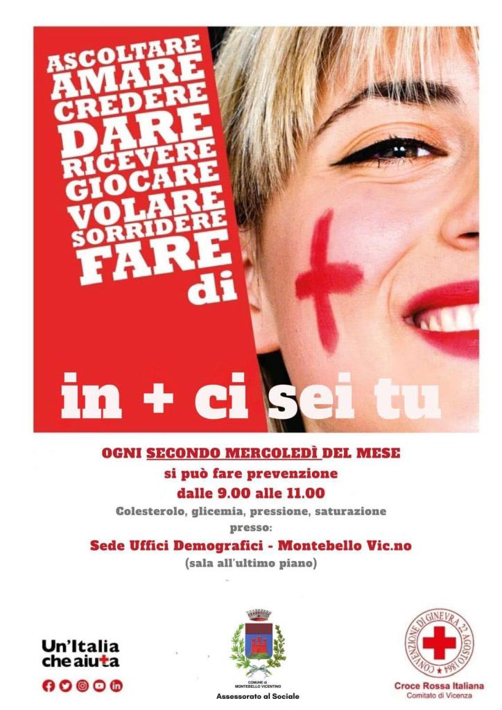 Riprende domani, mercoledì 8 ottobre dalle 9 alle 11, presso la sede degli Uffici Demografici del Comune (sala all’ultimo piano), il servizio gratuito di screening dello stato di salute, promosso dall’Assessorato al Sociale in collaborazione con il Comitato di Vicenza della Croce Rossa Italiana.