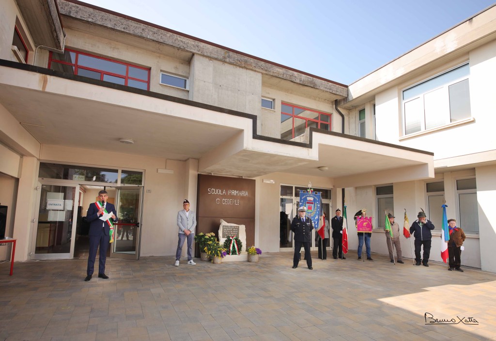 Questo il discorso del sindaco Dino Magnabosco al momento della commemorazione davanti al cippo della scuola primaria: