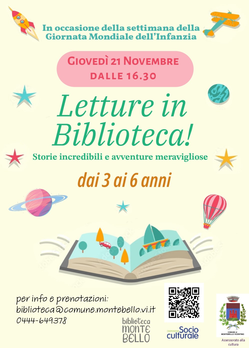 Letture in biblioteca per bambini dai 3 ai 6 anni In occasione della settimana in cui ricorre la Giornata Mondiale dell’Infanzia, giovedì 21…